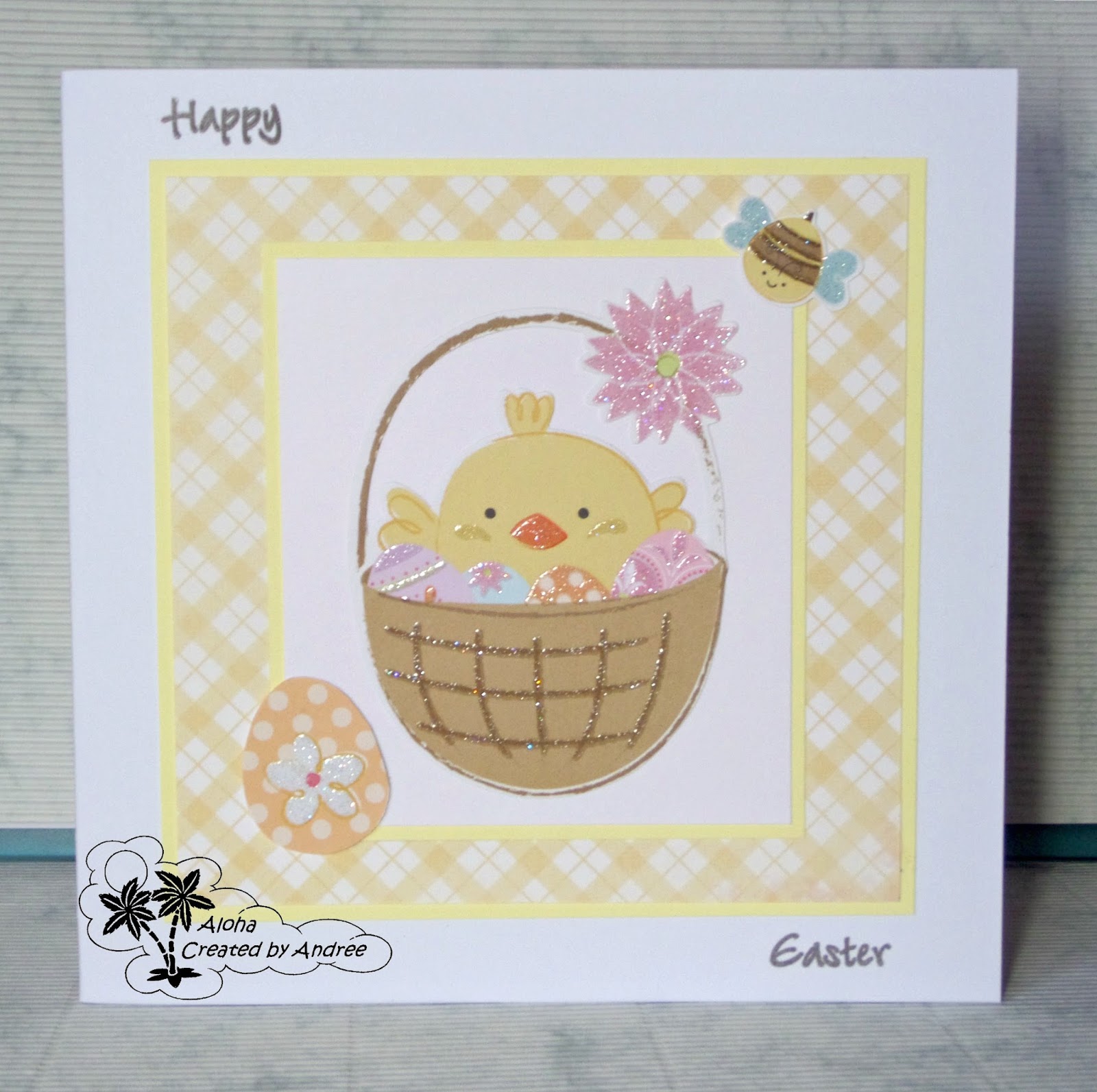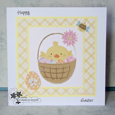 I coloured the image with Promarkers and layered it with some papers from Nitwit. The frames are cut with a Nellie Snellen stitched die and the banner and button are die cut too. The little butterfly is punched with a Woodware punch. The sentiment is another freebie.